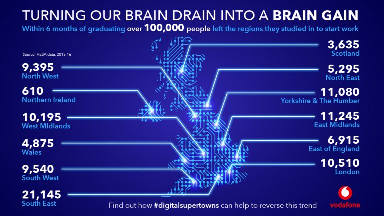 As a regionally-organised business and a Northern Powerhouse partner, Vodafone is committed to helping the North reach its full potential. Recently, we commissioned a report titled ‘Brain Gain’, on how towns and cities in the North West and across the country can build a steady pipeline of digital talent so that the UK can take full advantage of the benefits of technology.