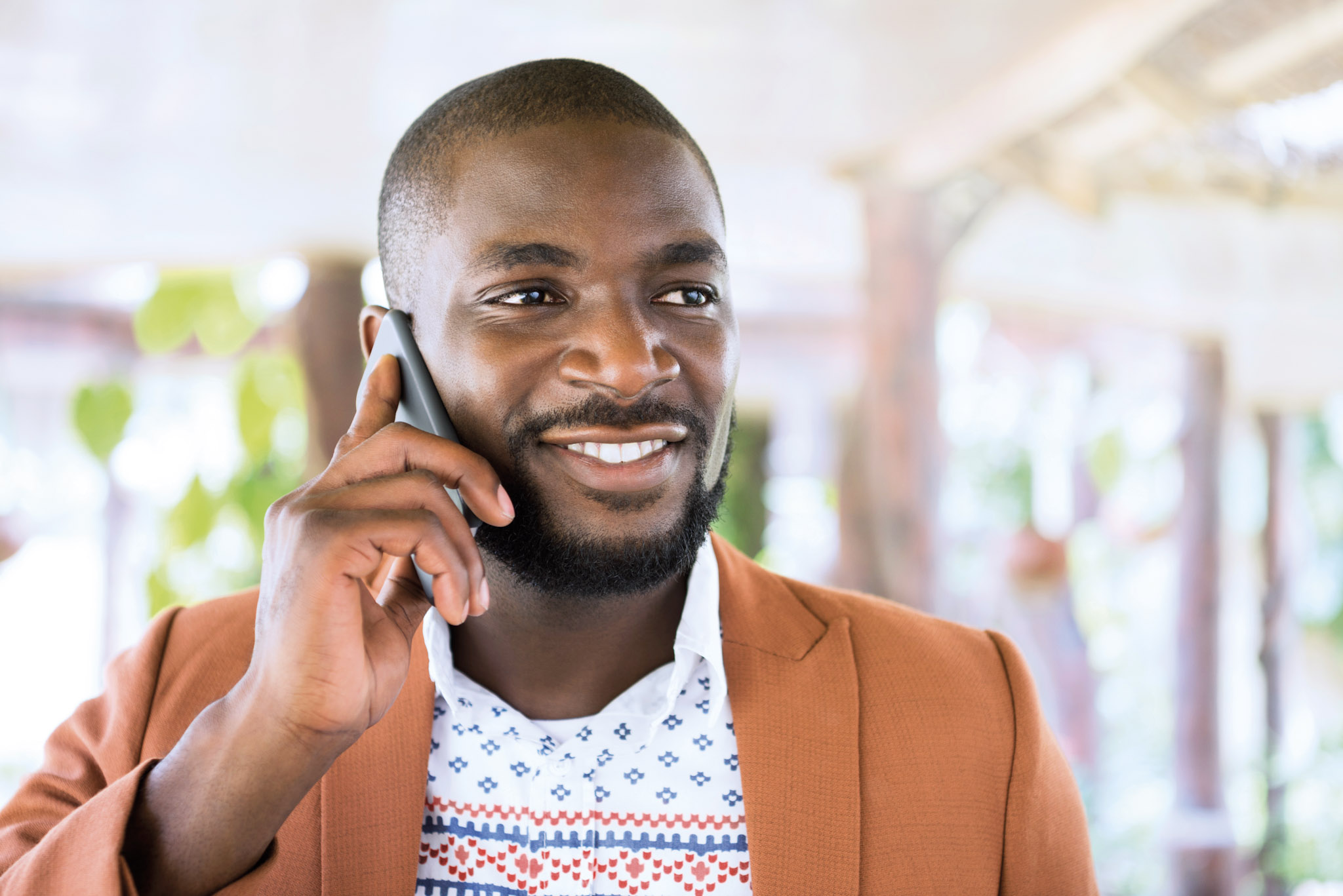 a man talking on a phone while standing outside