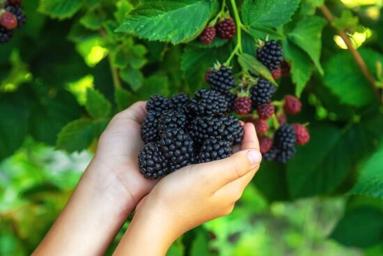 Child holding picked blackberries