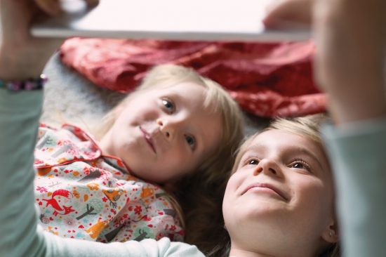 Ratio 16_9-Kids taking selfie on floor with tablet at home
